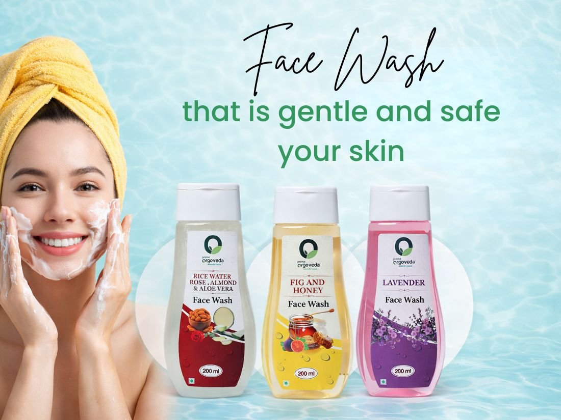 Orgoveda 100% Natural Rice Water, Rose, Almond & Aloe Vera Facewash 200ml | Brightening, Hydrating & Skin-Softening Cleanser