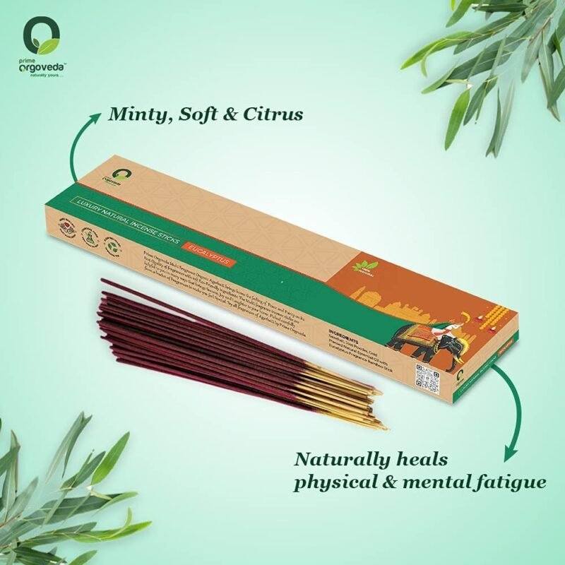 Orgoveda 100% Natural Luxury Fragrance Eucalyptus Incense Sticks – Pack of 50 sticks