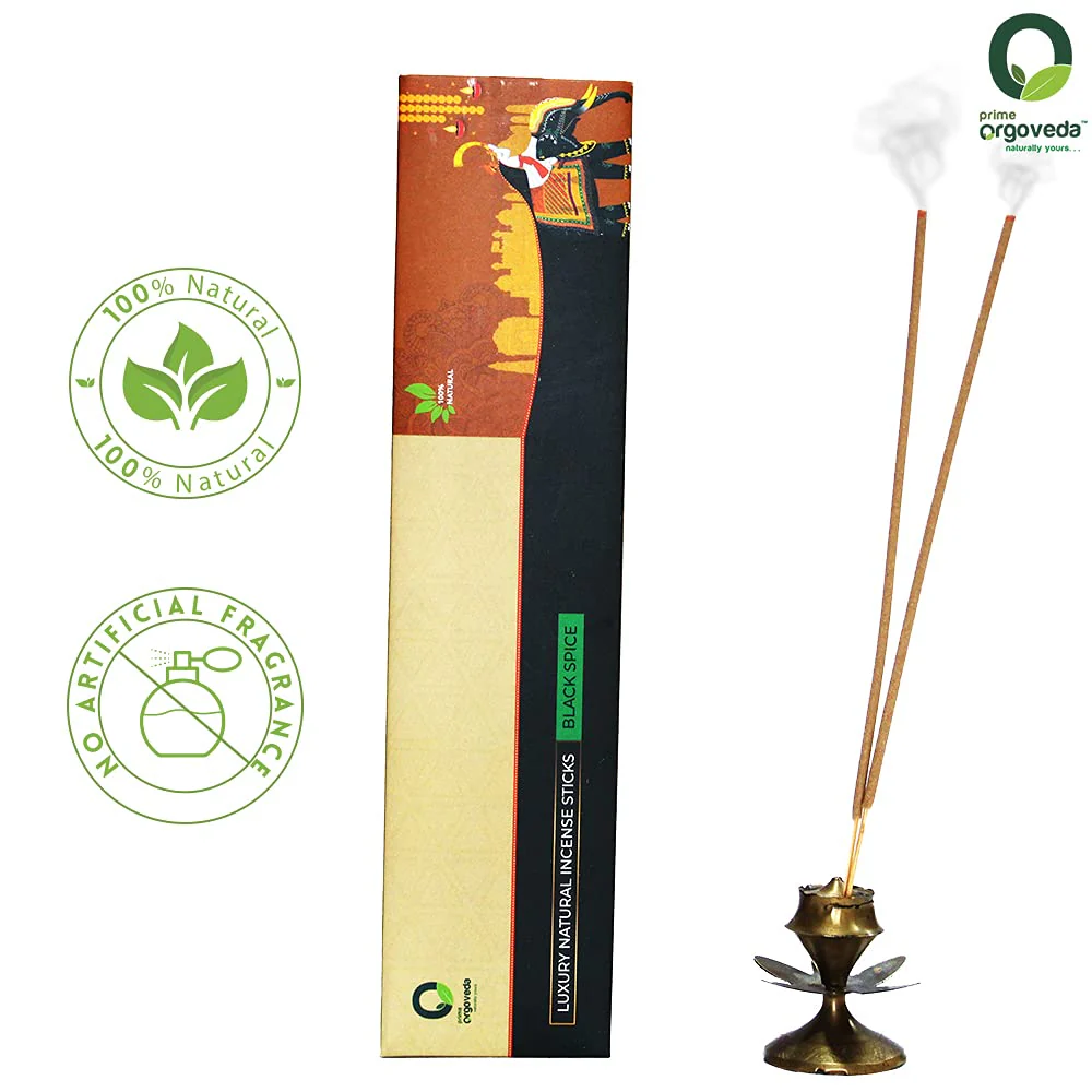Orgoveda 100% Natural Luxury Fragrance Black Spice Incense Sticks – Pack of 50 sticks
