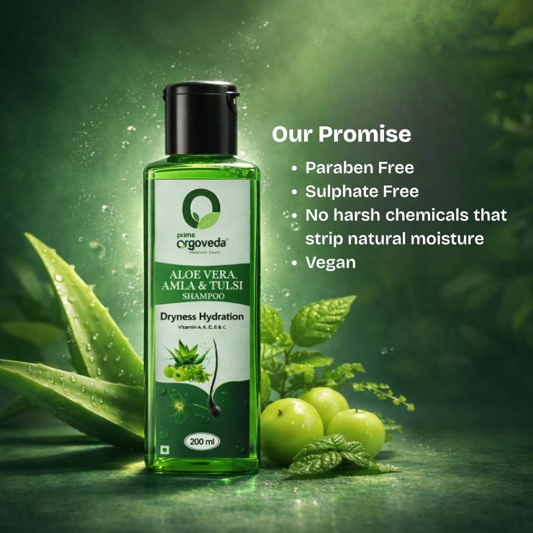 Orgoveda’s Amla, Tulsi & Aloe Vera Shampoo 200ml is a powerful natural hair cleanser crafted with premium herbal ingredients.