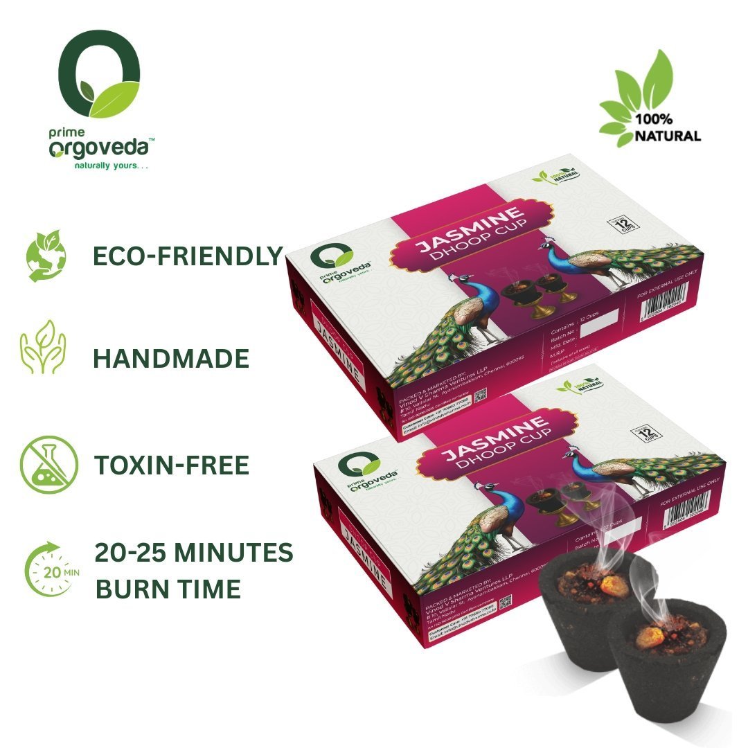 Jasmine Dhoop Cups are crafted to bring the sweet, floral essence of jasmine into your daily rituals and living spaces. Known as the “Queen of Flowers,” jasmine has been cherished for centuries for its ability to calm the mind, uplift the spirit, and inspire positivity. When lit, these dhoop cups release a soothing fragrance that creates a serene atmosphere, making them ideal for prayers, meditation, yoga, or simply unwinding after a busy day. With their long-lasting and natural aroma, Jasmine Dhoop Cups are perfect for turning ordinary moments into soulful experiences.