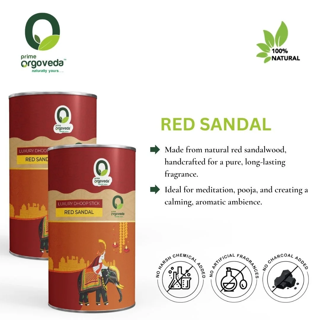 Immerse your space in the divine and soothing fragrance of Red Sandal Dhoop Sticks, now available in an exclusive Buy 2 Get 1 Free offer. Known for its warm, woody, and slightly sweet aroma, red sandalwood has been treasured in traditional rituals for its calming and purifying properties. Crafted with natural resins, herbs, and aromatic oils, these dhoop sticks release a rich, long-lasting fragrance that creates a serene, spiritual, and refreshing environment—perfect for daily pooja, meditation, and relaxation.
